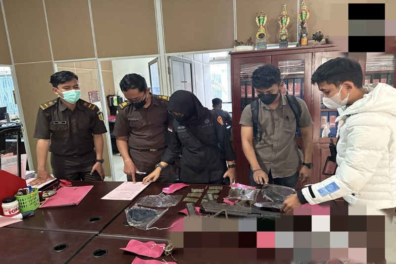 Barang bukti yang diserahkan bersama tersangka antara lain 2 pucuk senjata api laras panjang jenis AK-2000p, 2 buah magazine, 71 butir peluru tajam kaliber 5.56 mm, 1 magazine SS1, serta sejumlah barang pendukung lainnya.