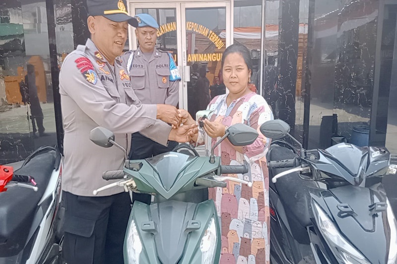 Polsek Arjawinangun Polresta Cirebon Serahkan temuan motor hilang kepada Ahmad Sawqiy dan Ibu Putri Senin (28/8/2023).