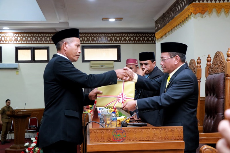 Sekda Marhaban SE., M.Si., mewakili Penjabat (Pj) Bupati Aceh Barat, menyerahkan LKPJ Pemerintah Kabupaten Aceh Barat tahun anggaran 2022 DPRK Selasa (02-05-2023).