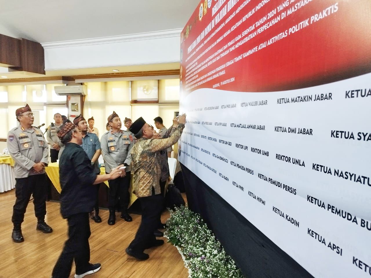 Wakapolda Jabar, Brigjen Pol. Bariza Sulfi, menekankan pentingnya menjaga integritas dan kejujuran dalam Pemilu. “Pemilu adalah sarana penting dalam menentukan masa depan negara kita. Kami berjanji untuk menjunjung tinggi nilai-nilai demokrasi, menghindari politik identitas, dan tidak menyebarluaskan berita palsu atau tindakan yang dapat memicu konflik,” ungkapnya.
