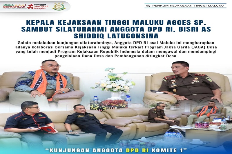 MALUKU – Ambon, Kepala Kejaksaan Tinggi Maluku Agoes Soenanto Prasetyo, S.H.,M.H beserta jajaran Kejaksaan Tinggi Maluku, menerima kunjungan silaturahmi Anggota DPD RI Komite I, Bisri As Shiddiq Latuconsina, S.Sos beserta rombongan di Kejaksaan Tinggi Maluku, pada hari ini Rabu (30/07/2025).
