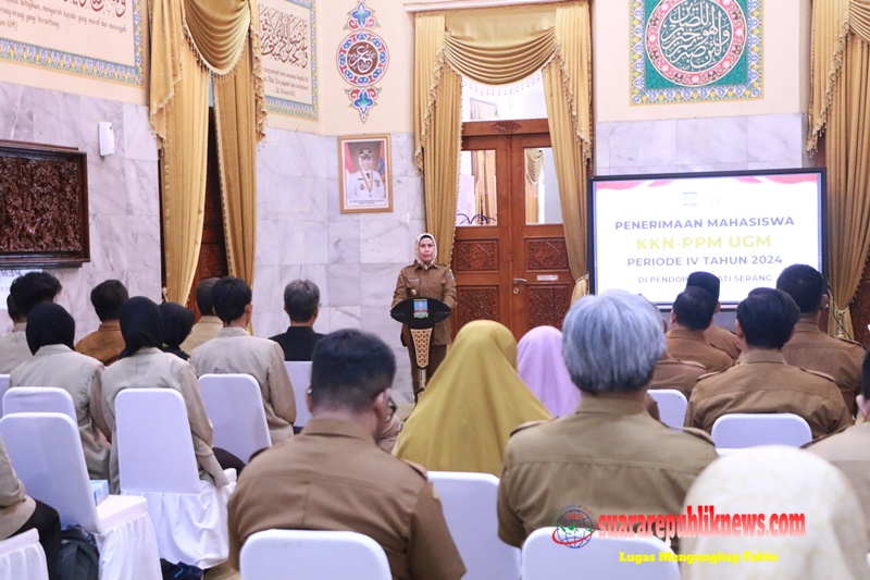 Kab Serang,Suara Republik News .Com – Bupati Serang, Ratu Tatu Chasanah secara resmi menerima Kuliah Kerja Nyata Pembelajaran Pemberdayaan Masyarakat (KKN-PPM) Mahasiswa Universitas Gadjah Mada (UGM) Yogyakarta Periode IV Tahun 2024. Tatu meyakini, program KKN Mahasiswa UGM bisa berdampak positif terhadap masyarakat Kabupaten Serang.