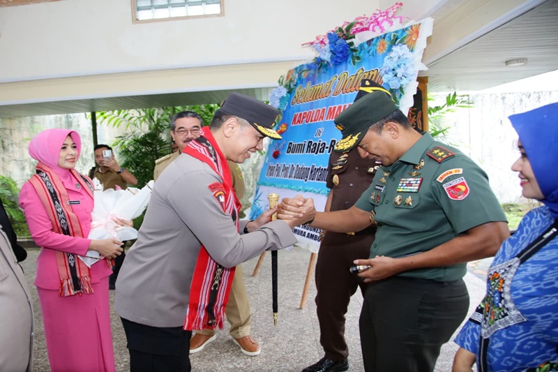 Kedatangan Kapolda disambut langsung di depan pintu gerbang ruang VVIP Bandara Pattimura. Gubernur Maluku selanjutnya mengalungkan kain syal tenun khas provinsi Para Raja-raja ini. Sementara bucket bunga diserahkan oleh Ketua PKK Maluku kepada Ketua Bhayangkari Daerah Maluku.
