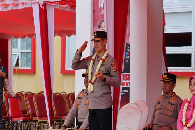 Kedatangan Kapolda dan rombongan disambut Kapolres MBD AKBP Budhi Suriawardhana, S.I.K. Penyambutan diawali dengan penyampaian Laporan Satuan oleh Kapolres.