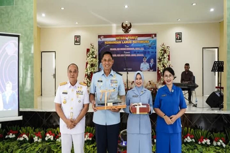 didampingi Ketua Daerah Kodaeral lX Gabungan Jalasenastri Koarmada Rl, Ny. Inca Hanarko Djodi menghadiri Upacara Serah Terima Jabatan (Sertijab) Komandan Pangkalan TNI Angkatan Udara (Danlanud) Pattimura pada Kamis (23/4/2026).