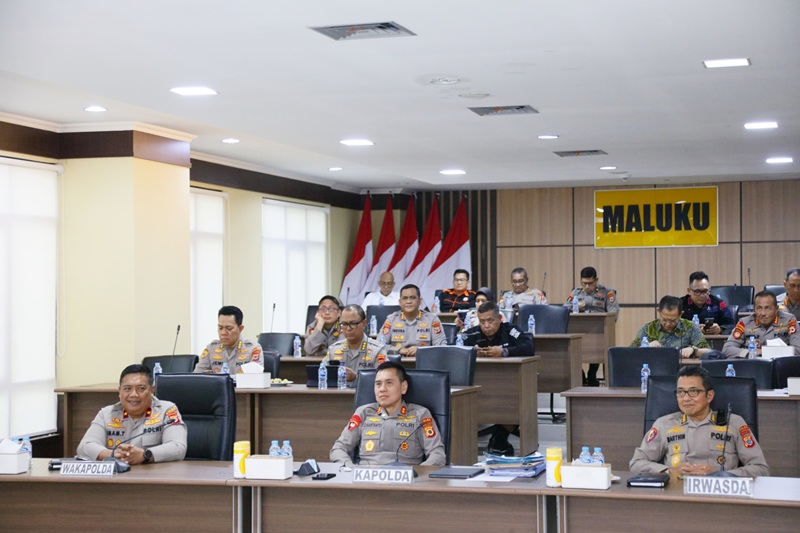 Para Kapolda di Indonesia juga hadir secara daring, termasuk Kapolda Maluku, Irjen Pol. Prof. Dr. Dadang Hartanto S.H., S.I.K., M.Si, melalui video conference (Vicon). Kapolda didampingi Wakapolda Maluku Brigjen Pol. Imam Thobroni, S.I.K., M.H, dan turut dihadiri seluruh Pejabat Utama Polda Maluku.