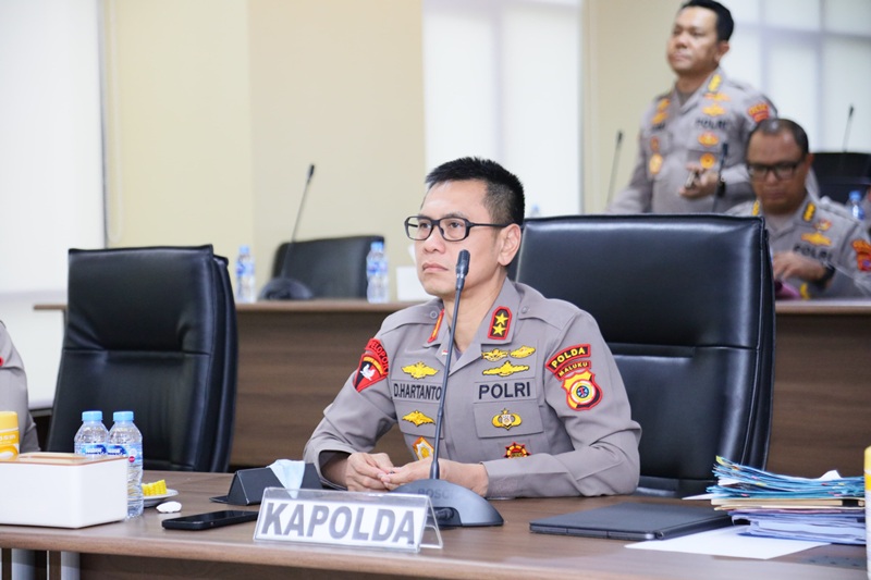 Para Kapolda di Indonesia juga hadir secara daring, termasuk Kapolda Maluku, Irjen Pol. Prof. Dr. Dadang Hartanto S.H., S.I.K., M.Si, melalui video conference (Vicon). Kapolda didampingi Wakapolda Maluku Brigjen Pol. Imam Thobroni, S.I.K., M.H, dan turut dihadiri seluruh Pejabat Utama Polda Maluku.