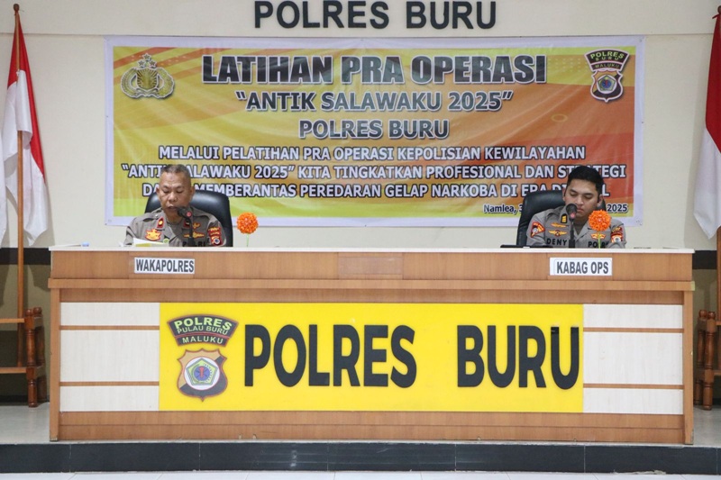 Dalam sambutannya, Waka Polres Buru menyampaikan bahwa operasi Antik Salawaku merupakan salah satu upaya Polri dalam memberantas peredaran dan penyalahgunaan narkotika yang masih menjadi ancaman serius bagi generasi bangsa.
