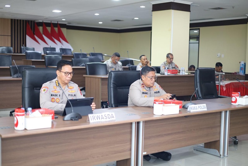 Rapat yang diikuti secara daring oleh Wakapolda didampingi Irwasda Kombes Pol I Made Sunarta S.E., M.H dan sejumlah Pejabat Utama Polda Maluku ini berlangsung dari Ruang Video Conference Markas Polda Maluku, Tantui, Kota Ambon, Selasa (10/2/2026), .