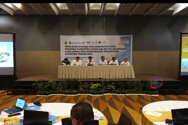 Medan, Suararepubliknews.com -Wakil Bupati Humbahas yang juga Ketua Tim Percepatan Penurunan Stunting (TPPS) Kabupaten Humbahas Oloan Paniaran Nababan, S.H., M.H ikut menghadiri acara penilaian kinerja Kabupaten/Kota Provinsi Sumut dalam pelaksanaan 8 (delapan) aksi konvergensi penurunan stunting Tahun 2022 di Medan. Kegiatan itu dilaksanakan Selasa-Kamis, 28-30 Maret 2023 bertempat di Hotel Santika Premiere Dyandra dan Convention Medan.