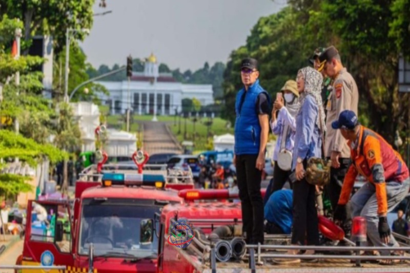 Setibanya di lokasi, Bima Arya langsung mengenakan pakaian pemadam dan langsung mengecek ke beberapa titik lokasi.
